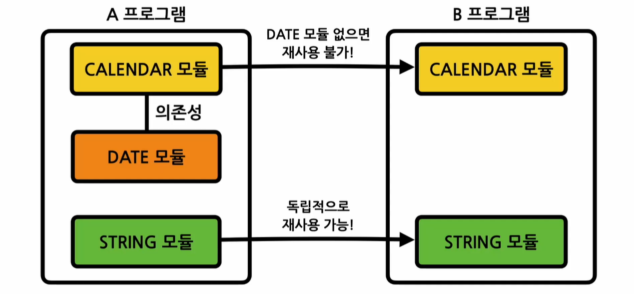 재사용하는 것의 장점은 개발 기간이 단축되고, 유지 보수가 용이하다는 것이다.